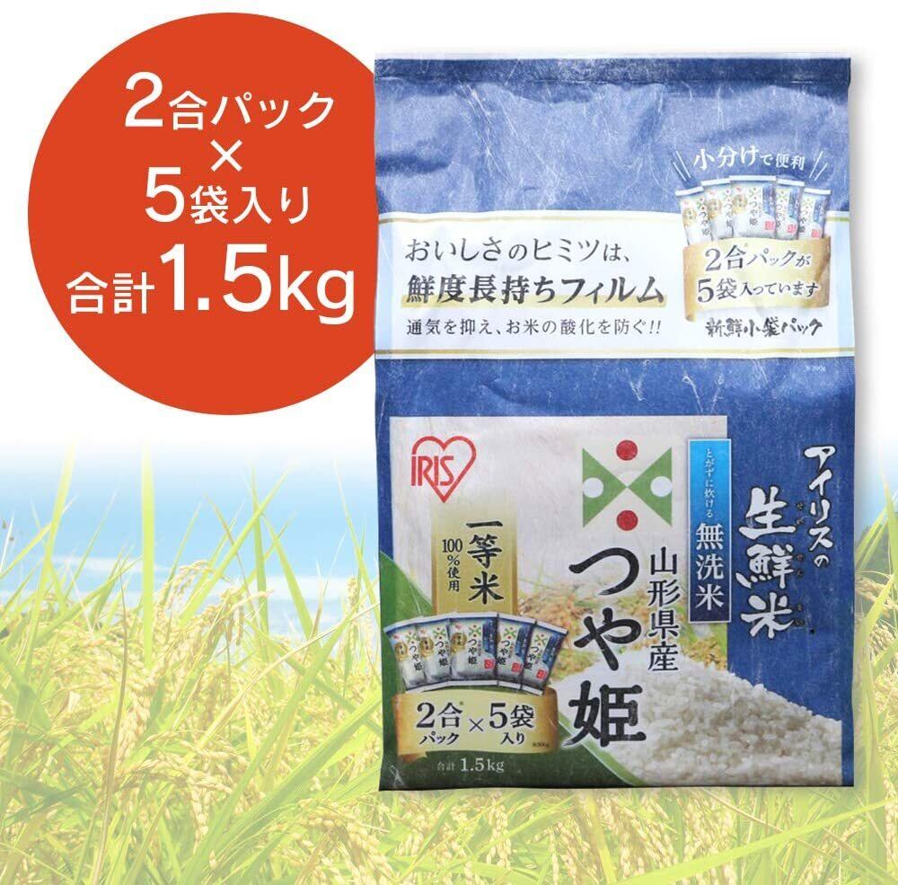 【精米】低温製法米 無洗米 山形県産 つや姫 新鮮個包装パック 1.5kg (2合×5パック) 令和3年産